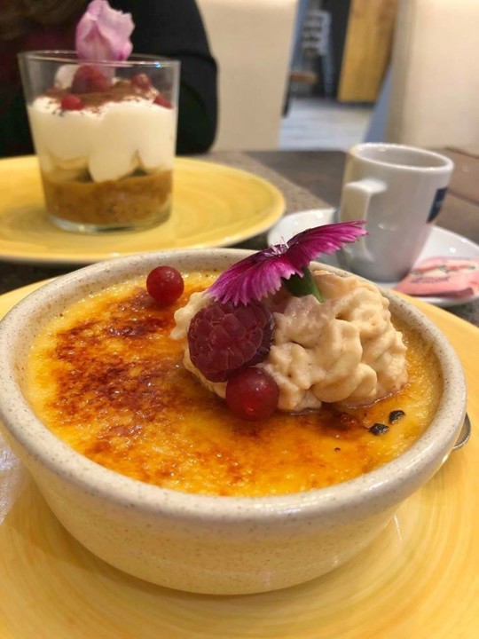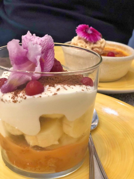Para o doce final escolhemos o Crème Brulée e Aguardente de Mel e o Banana e Caramelo Salgado. Apesar de não gostar de banana, adorei esta sobremesa. O caramelo salgado, a nata e o crumble são divinais. Arrisco-me e sugerir à gerência que faça um igualzinho, mas sem fruta