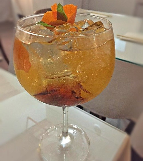 A começar pelo gin de laranja caramelizada que, além de ter umas cores muito atraentes, estava graciosamente bem confecionado.
